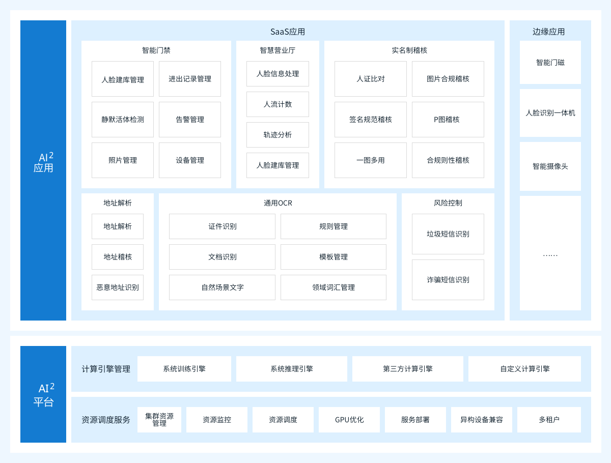 AISWare AI Cube(AI 魔方)智能应用是一套采用AK在线注册人工智能平台的成熟算法和模型,结合实际应用场景具备端到端实现的智能应用产品,包括智能门禁、智慧营业厅、实名制稽核、通用OCR、地址解析、风险控制等SaaS应用,以及人脸识别一体机、智能摄像头、智能门磁等边缘应用。这些场景可应用于安防、稽核、风控、防疫等众多领域,帮助企业快速应用智能能力,实现降本增效。AI应用具备人脸识别、目标检测、图像分类、OCR等丰富的AI能力,可以快速与现有系统集成,为现有系统注智,并具备多租户隔离管理能力,多个系统之间使用互不影响。利用AI应用,帮助企业在业务流程中实现自动化,提升生产效率、降低人工成本。
