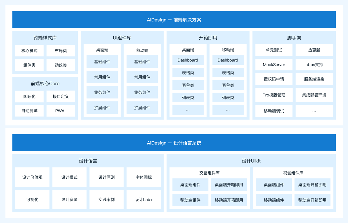 AISWare AIDesign是一套服务于设计&前端的工具集与开发平台,包含面向UIUX的设计语言系统,面向开发的前端UI框架,面向工程化的脚手架工具,可以帮助企业构建自己的设计语言体系,提升企业的设计和开发效率,提升产品的用户体验。