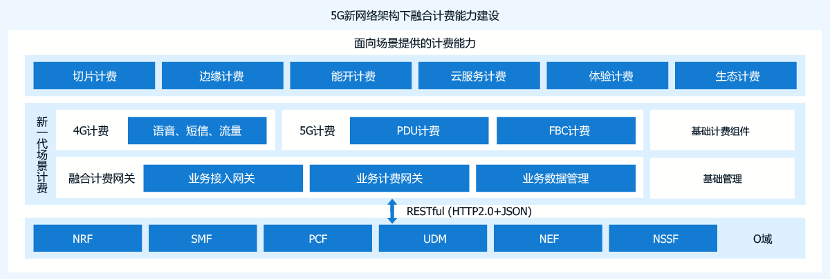 实现在两种组网模式下(NSA和SA)产品套餐统一、业务受理一致、用户感知一致的统一体验,实现5G离在线融合计费能力,形成统一的4/5G话单计费处理流程,支撑移动云、能力计费、5G专网等多量纲产品计费。