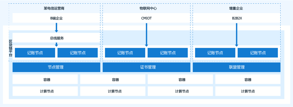 某省级运营商物联网卡设备需要通过集团数字身份凭证认证,为了更快可信的拓展物联网接入方,更好地跟踪物联网设备的使用、开展物联网设备的增值服务、计费等内容,客户需求构建一个多方协作的存证系统。